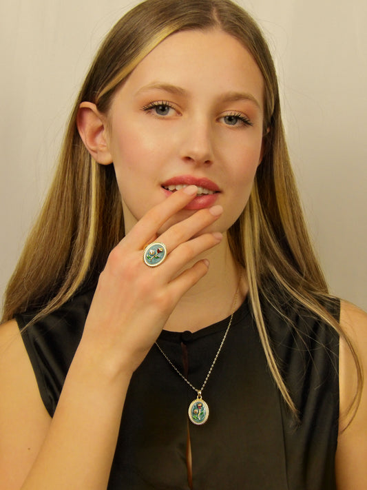 Collier peinture en forme de cœur de fleur blanche avec perles