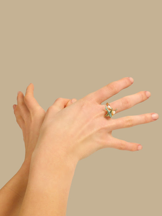 Bague oiseau martin-pêcheur vert avec perles