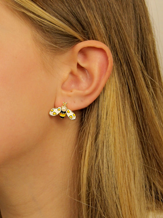 Boucles d'oreilles abeille avec des coeurs