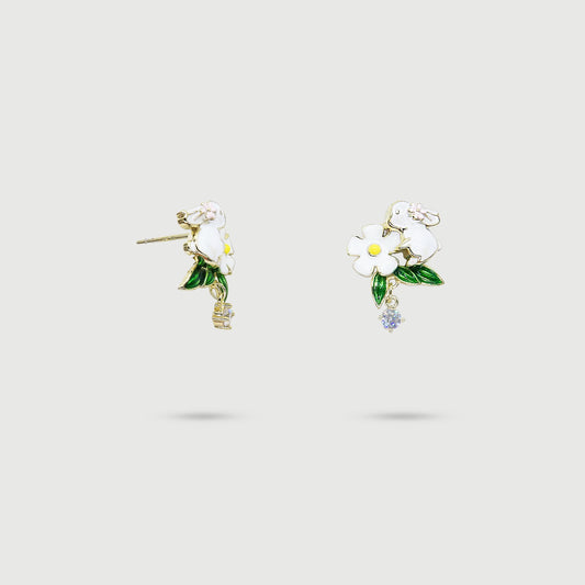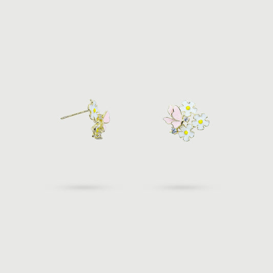 Boucles d'oreilles fleurs blanches avec papillon