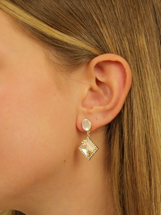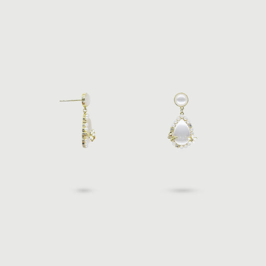 Boucles d'oreilles papillon et fleur avec perle et pierres blanches