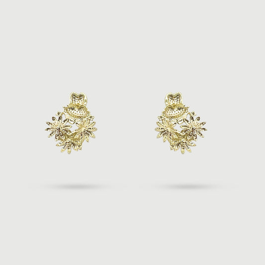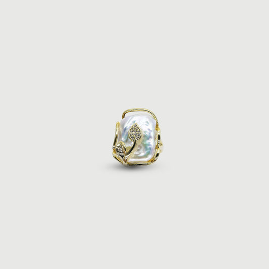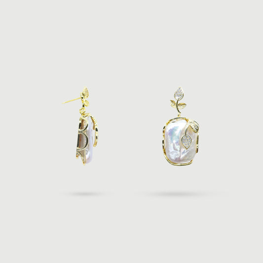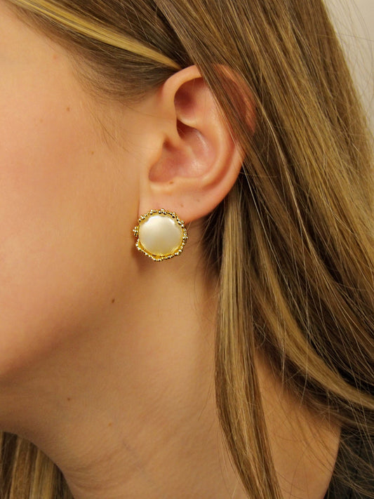 Boucles d'oreilles grande perle avec fleurs dorées autour