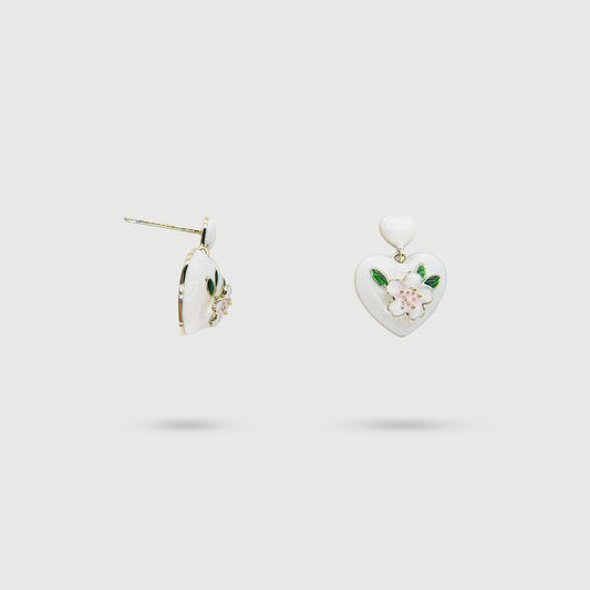Boucles d'oreilles papillon et fleur avec perle et pierres blanches