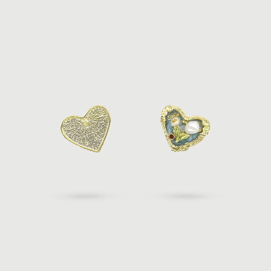 Boucles d'oreilles grand cœur en nacre entouré de points dorés