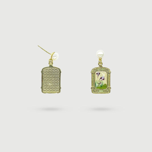 Boucles d'oreilles peinture rectangulaire de fleurs violettes