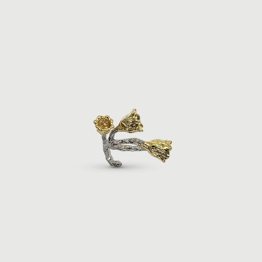 Bague ajustable quatre roses dorées avec vignes en argent