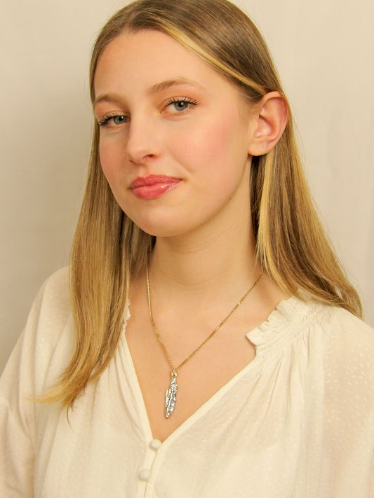 Collier poisson brochet en argent et or